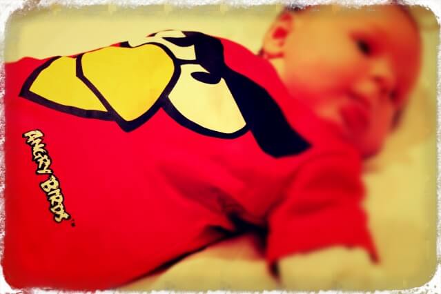 Es handelt sich hierbei um ein rotes T-Shirt mit einem Angry Bird Vogel als Aufruck. Ursprünglich hing das T-Shirt in der Abteilung für Jungenkleidung, was uns jedoch überhaupt nicht störte! Grundsätzlich gilt: immer mal wieder bei den Jungs schauen, weil man hier das ein oder andere tolle Kleidungsstück in neutralen Farben ergattern kann, was nicht aussieht als wäre es in einen rosa glitzer Eintopf gefallen!
